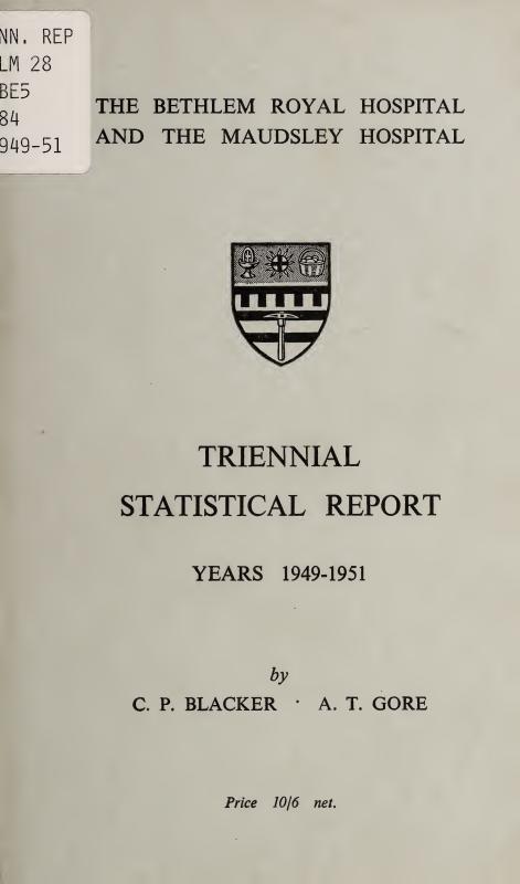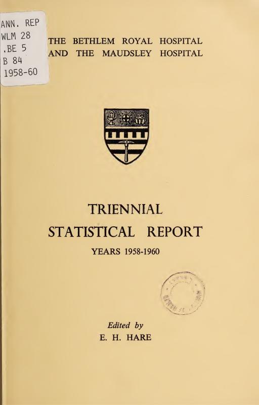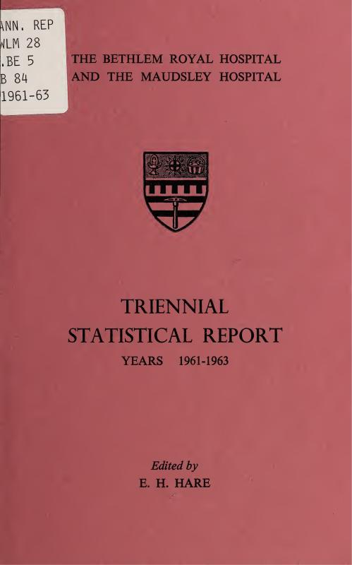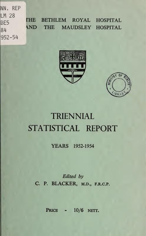 Few clinicians would recurrently venture on the task of preparing a large hospital’s statistical report without a conviction that it had not only a present value but also some value of a more lasting kind. In preparing the Sixth Triennial Report (the fourth prepared by him), the present editor has come increasingly to see this series as a mirror reflecting aspects of the life-history of the Bethlem-Maudsley hospital; and the dry bones of its statistical tables may help a future historian to re-create something of the living and changing scene.